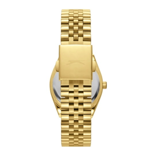 Женские кварцевые часы Slazenger SL.09.2376.3.05 – это сочетание элегантности, современного стиля и надёжности. Изящный корпус из суперметалла с IP-покрытиемIP-покрытиеМетод ионного напыления. Демонстрирует повышенную устойчивость к истиранию, окислению и химическим веществам. Под воздействием высокого давления и температуры около 1500°C молекулы металла надёжно соединяются с частицами корпуса часов. золотистого цвета, диаметром 32 мм и толщиной 9 мм, подчёркивает утончённость модели и делает их идеальным аксессуаром для любой ситуации – будь то деловая встреча, романтический вечер или повседневные выходы. Циферблат надёжно защищён минеральным стекломМинеральное стеклоМинеральное стекло представляет собой искусственно выращенный минерал кварца. Такое стекло отличается особой устойчивостью к повреждениям и царапинам. Уступает по некоторым качествам сапфировому стеклу., которое устойчиво к механическим повреждениям и сохраняет кристальную прозрачность. Неподвижный безельБезельВнешний ободок, закрепляющий стекло. В спортивных часах так называется поворотное кольцо с делениями на циферблате, выполняет роль таймера – замеряет отрезки времени на шкале. Неподвижный безель – элемент декора. Однонаправленно вращающийся безель на дайверских часах позволяет фиксировать моменты погружения и выныривания на поверхность. с IP-покрытиемIP-покрытиеМетод ионного напыления. Демонстрирует повышенную устойчивость к истиранию, окислению и химическим веществам. Под воздействием высокого давления и температуры около 1500°C молекулы металла надёжно соединяются с частицами корпуса часов. серого цвета. Браслет из суперметалла удобно облегает запястье и фиксируется с помощью раскладной застёжкиРаскладная застёжкаТакой тип застёжки используется только на браслетах из металла. Она никогда не раскрывается полностью, происходит разделение на 2 и более частей. Раскладывающая застёжка снизит вероятность потери часов к минимуму., обеспечивая надёжность и комфорт в повседневном ношении. Утончённый стиль, внимание к деталям и практичность делают эту модель идеальным выбором для современных женщин, ценящих эстетику и функциональность. Метки покрыты люминесцентным покрытиемЛюминесцентное покрытиеПозволяет считывать показания времени в темноте. Производители наносят на стрелки, часовые индексы, безель или поверхность циферблата светонакопительный состав, дающий холодное свечение., обеспечивающим отличную читаемость в темноте. Водозащита до 30 метров позволит защитить корпус от случайных брызг или капель дождя.