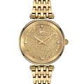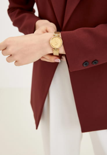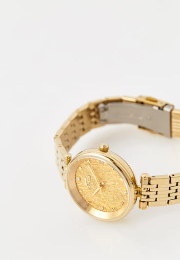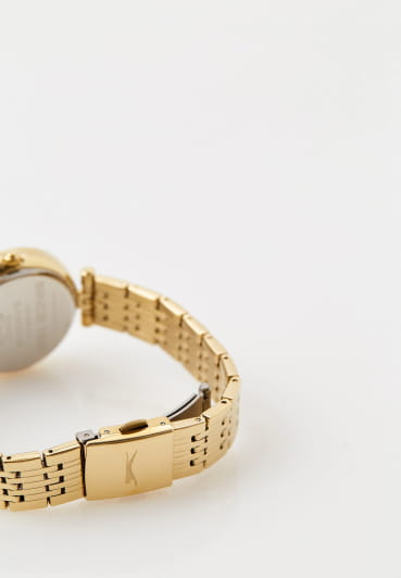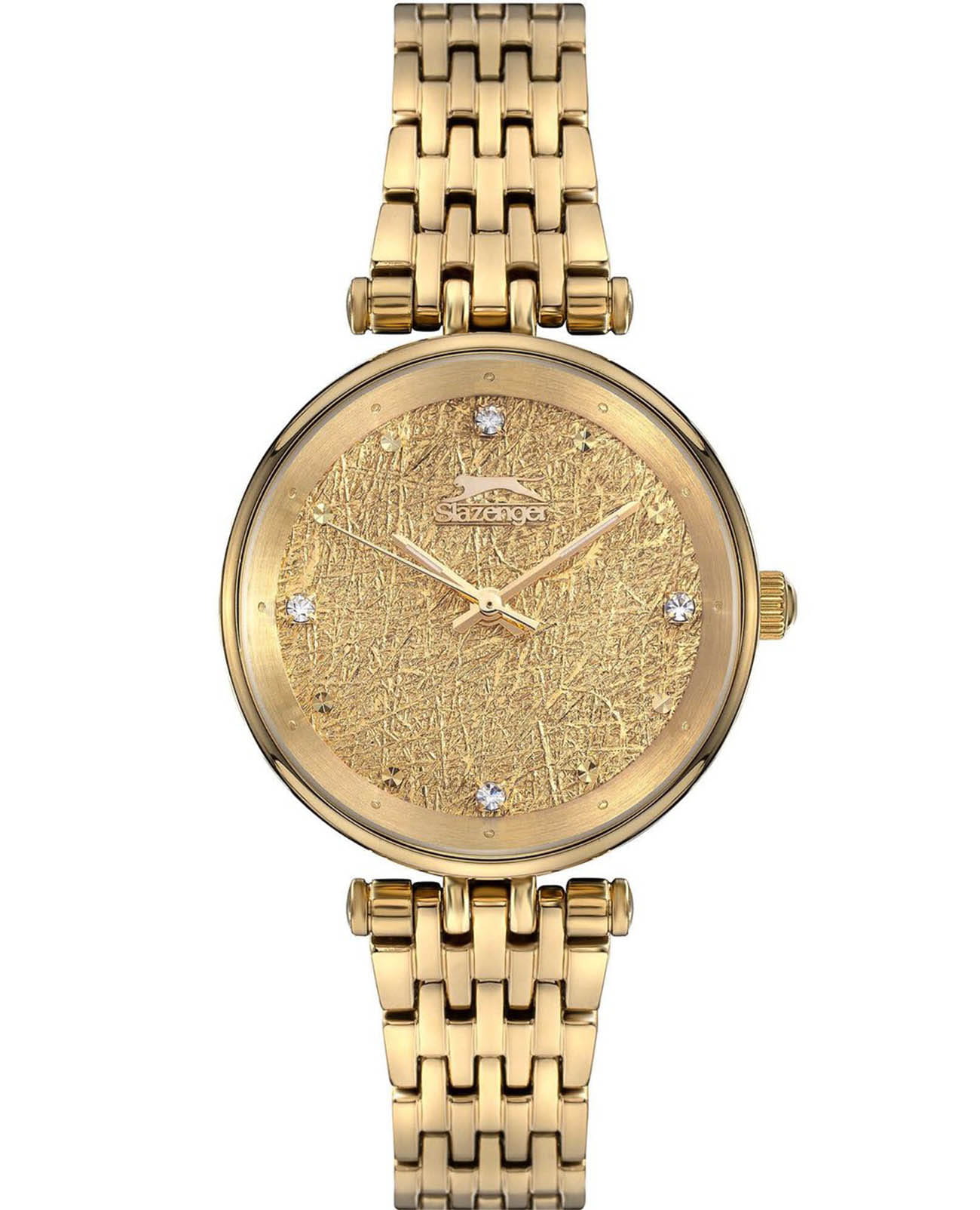 Женские кварцевые часы Slazenger — это элегантный аксессуар. Корпус диаметром 32 мм и толщиной 9 мм выполнен из суперметалла с IP-покрытиемIP-покрытиеМетод ионного напыления. Демонстрирует повышенную устойчивость к истиранию, окислению и химическим веществам. Под воздействием высокого давления и температуры около 1500°C молекулы металла надёжно соединяются с частицами корпуса часов.. Циферблат золотого цвета оформлен индексами, стрелками и украшен фианитами. Циферблат защищён минеральным стекломМинеральное стеклоМинеральное стекло представляет собой искусственно выращенный минерал кварца. Такое стекло отличается особой устойчивостью к повреждениям и царапинам. Уступает по некоторым качествам сапфировому стеклу.. Часы оснащены браслетом из суперметалла на раскладной застёжкеРаскладная застёжкаТакой тип застёжки используется только на браслетах из металла. Она никогда не раскрывается полностью, происходит разделение на 2 и более частей. Раскладывающая застёжка снизит вероятность потери часов к минимуму.. Водонепроницаемость 30 м позволяет использовать часы в повседневных условиях. Идеальный выбор для тех, кто ценит стиль и качество.
