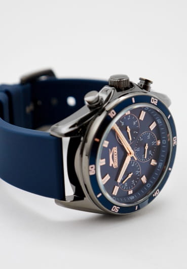Мужские кварцевые часы Slazenger SL.09.6523.2.02 – идеальное сочетание классического дизайна и современных технологий, созданное для уверенных в себе мужчин. Корпус выполнен из суперметалла с IP-покрытиемIP-покрытиеМетод ионного напыления. Демонстрирует повышенную устойчивость к истиранию, окислению и химическим веществам. Под воздействием высокого давления и температуры около 1500°C молекулы металла надёжно соединяются с частицами корпуса часов. черного цвета, диаметром 45 мм и толщиной 12.5 мм, подчёркивает надежность модели и делает их идеальным аксессуаром для любой ситуации – будь то деловая встреча или повседневные выходы. Циферблат надёжно защищён минеральным стекломМинеральное стеклоМинеральное стекло представляет собой искусственно выращенный минерал кварца. Такое стекло отличается особой устойчивостью к повреждениям и царапинам. Уступает по некоторым качествам сапфировому стеклу., которое устойчиво к механическим повреждениям и сохраняет кристальную прозрачность. Силиконовый ремешок на стандартной застёжке, обеспечивает надёжность и комфорт в повседневном ношении. Стрелки и метки покрыты люминесцентным покрытиемЛюминесцентное покрытиеПозволяет считывать показания времени в темноте. Производители наносят на стрелки, часовые индексы, безель или поверхность циферблата светонакопительный состав, дающий холодное свечение., обеспечивающим отличную читаемость в темноте. Неподвижный безельБезельВнешний ободок, закрепляющий стекло. В спортивных часах так называется поворотное кольцо с делениями на циферблате, выполняет роль таймера – замеряет отрезки времени на шкале. Неподвижный безель – элемент декора. Однонаправленно вращающийся безель на дайверских часах позволяет фиксировать моменты погружения и выныривания на поверхность. с IP-покрытиемIP-покрытиеМетод ионного напыления. Демонстрирует повышенную устойчивость к истиранию, окислению и химическим веществам. Под воздействием высокого давления и температуры около 1500°C молекулы металла надёжно соединяются с частицами корпуса часов. синего цвета. Вынесенный циферблат с 24-х часовым указателем времени. Эти часы станут не просто аксессуаром, а надежным спутником в любой ситуации, подчеркивая ваш безупречный вкус и деловой стиль. Водозащита 50 метров позволит защитить корпус от случайных брызг или капель дождя.