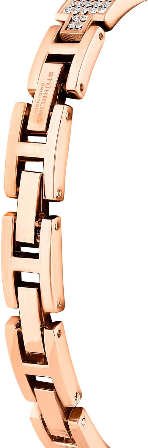 Stuhrling Vogue 3949.3 — изысканные женские часы, в которых сочетаются утончённость и современная элегантность. Тонкий корпус из нержавеющей стали с PVD-покрытиемPVDУльтратонкое покрытие наносится в технике вакуумного напыления, сочетает в себе нитрид титана особой прочности со слоем золота или оксида хрома. Несёт в себе декоративную или защитную функцию. украшен сверкающими кристаллами, создающими изящный блеск при каждом движении. Глубокий золотистый циферблат с эффектом солнечных лучей подчёркивает минималистичный дизайн и чистоту линий. Защиту от царапин обеспечивает стекло KrysternaKrysternaKrysterna — инновационное стекло для наручных часов. Благодаря уникальной структуре, Krysterna объединяет ключевые преимущества двух материалов: твердость сапфира, защищающую от царапин, и гибкость минерального стекла, обеспечивающую устойчивость к деформациям. Такая комбинация делает его идеальным решением для часов, подверженных экстремальным нагрузкам, сохраняя при этом оптическую прозрачность., сохраняющее безупречную прозрачность. Стальной браслет с PVD-покрытиемPVDУльтратонкое покрытие наносится в технике вакуумного напыления, сочетает в себе нитрид титана особой прочности со слоем золота или оксида хрома. Несёт в себе декоративную или защитную функцию. и ювелирной застежкой комфортно облегает запястье и придаёт часам завершённый ювелирный облик. Stuhrling Vogue — символ женственности, сияния и вкуса в каждой детали.
