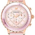 Женские часы Swarovski Octea Lux Chrono 5452501 – это роскошные часы с секундомеромСекундомерСекундоме́р — прибор, способный измерять интервалы времени с точностью до долей секунды. и хронографомХронографФункция позволяет измерять отрезки времени с особой точностью: часы, минуты, секунды. Верным признаком хронографа является наличие на циферблате 3 дополнительных окошек-счётчиков., поистине, образец точности и роскоши, ведь они сочетают в себе лучшие традиции швейцарского часового искусства и неповторимое мастерство Swarovski. Прекрасный аксессуар, подходящий к любому повседневному образу. Часы имеют функцию хронографаХронографФункция позволяет измерять отрезки времени с особой точностью: часы, минуты, секунды. Верным признаком хронографа является наличие на циферблате 3 дополнительных окошек-счётчиков., позволяющую запустить отсчет, остановить его и обнулить результаты. Корпус из нержавеющей стали с PVDPVDУльтратонкое покрытие наносится в технике вакуумного напыления, сочетает в себе нитрид титана особой прочности со слоем золота или оксида хрома. Несёт в себе декоративную или защитную функцию. покрытием оттенка розового золота гармонично сочетается с огранённым кристальным безелемБезельВнешний ободок, закрепляющий стекло. В спортивных часах так называется поворотное кольцо с делениями на циферблате, выполняет роль таймера – замеряет отрезки времени на шкале. Неподвижный безель – элемент декора. Однонаправленно вращающийся безель на дайверских часах позволяет фиксировать моменты погружения и выныривания на поверхность., который встречается только в коллекции часов Swarovski. Его светло-розовое сияние удачно сочетается с розовым циферблатом с рисунком в виде солнечных лучей и ремешком из натуральной кожи с тиснением под крокодила. Надежное минеральное стеклоМинеральное стеклоМинеральное стекло представляет собой искусственно выращенный минерал кварца. Такое стекло отличается особой устойчивостью к повреждениям и царапинам. Уступает по некоторым качествам сапфировому стеклу. защищает часы от царапин и долго сохраняет первоначальный внешний вид. На часовую, минутную стрелки нанесено люминесцентное покрытиеЛюминесцентное покрытиеПозволяет считывать показания времени в темноте. Производители наносят на стрелки, часовые индексы, безель или поверхность циферблата светонакопительный состав, дающий холодное свечение., которое светится в темноте, создавая необычное изображение.