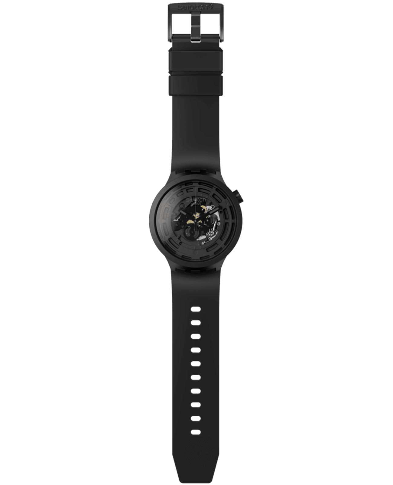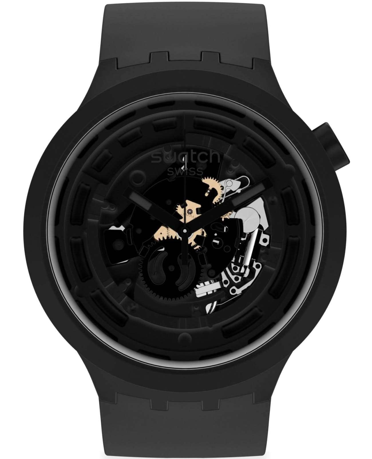Часы Swatch SB03B100 — это стильный и современный аксессуар для тех, кто ценит лёгкость и комфорт. Часы идеально подойдут как для мужчин, так и для женщин. Прекрасный образец часов, выполненных полностью из материалов биологического происхождения: открытый механизм и биокерамикаБиокерамикаБиокерамика — это материал, который на две трети состоит из керамики, на одну треть — из биопластика. Он сочетает в себе лучшие качества обоих материалов и обладает прочностью и шелковистой на ощупь текстурой., которая создает ощущение шелковистости. Впечатляющий дизайн черного цвета — инновация в своем лучшем проявлении. На часовую, минутную стрелки нанесено люминесцентное покрытиеЛюминесцентное покрытиеПозволяет считывать показания времени в темноте. Производители наносят на стрелки, часовые индексы, безель или поверхность циферблата светонакопительный состав, дающий холодное свечение., которое светится в темноте, создавая необычное изображение. Водозащита 30 метров делает часы практичными для повседневного использования. Эти часы подойдут для повседневного ношения и станут ярким акцентом в вашем наряде.