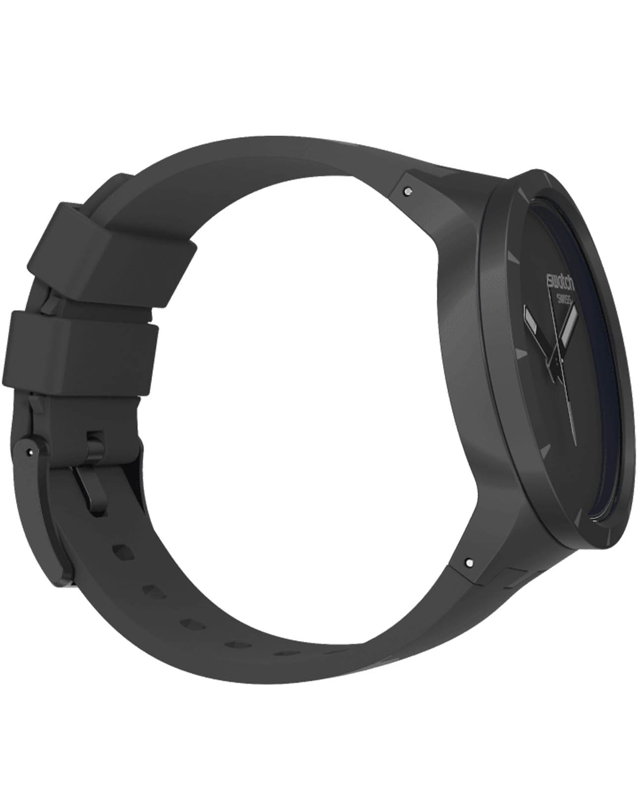 Часы Swatch SB03B110 — это стильный и современный аксессуар для тех, кто ценит лёгкость и комфорт. Часы идеально подойдут как для мужчин, так и для женщин. Центральный элемент этой модели часов — большой корпус со стеклом из био-материала, украшенный 3D-циферблатом с принтами на индексах. Корпус из биокерамикиБиокерамикаБиокерамика — это материал, который на две трети состоит из керамики, на одну треть — из биопластика. Он сочетает в себе лучшие качества обоих материалов и обладает прочностью и шелковистой на ощупь текстурой., а ремешок — из однотонного матово-черного силикона с темно-серым принтом. Черный циферблат подчеркивает белые акценты на темных стрелках. Секундная стрелка, прообразом которой стала стрелка компаса, усиливает дух приключений. На часовую, минутную стрелки нанесено люминесцентное покрытиеЛюминесцентное покрытиеПозволяет считывать показания времени в темноте. Производители наносят на стрелки, часовые индексы, безель или поверхность циферблата светонакопительный состав, дающий холодное свечение., которое светится в темноте, создавая необычное изображение. Водозащита 30 метров делает часы практичными для повседневного использования. Эти часы подойдут для повседневного ношения и станут ярким акцентом в вашем наряде.
