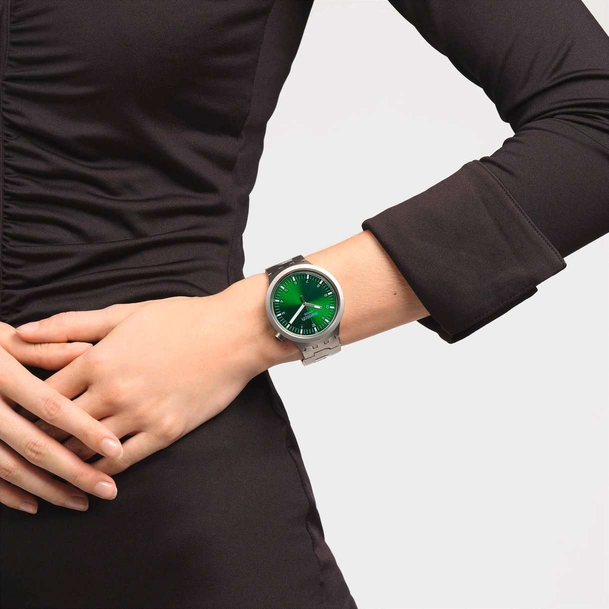 Часы Swatch SB07S101G — это стильный и современный аксессуар для тех, кто ценит лёгкость и комфорт. Часы идеально подойдут как для мужчин, так и для женщин. Эти большие часы из нержавеющей стали имеют циферблат зеленого цвета c радиальной полировкой, бирюзовым принтом и серыми светящимися в темноте стрелками благодаря люминесцентному покрытиюЛюминесцентное покрытиеПозволяет считывать показания времени в темноте. Производители наносят на стрелки, часовые индексы, безель или поверхность циферблата светонакопительный состав, дающий холодное свечение.. Дизайн часов дополняют регулируемый браслет с застёжкой «бабочка»Застёжка "бабочка"Такой вид застёжки дополняется предохранителями, помогающими избежать случайного раскрытия браслета. Обладают изящным исполнением. и корпус из нержавеющей стали с пескоструйной обработкой. Водозащита 30 метров делает часы практичными для повседневного использования. Эти часы подойдут для повседневного ношения и станут ярким акцентом в вашем наряде.
