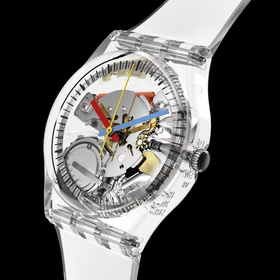 Часы Swatch Gent Biosourced Swatch Pay! SO28K109-5300 — это стильный и современный аксессуар, который идеально подходит для повседневного ношения. Они оснащены прозрачным блестящим корпусом и ремешком. Серебристое кольцо сверкает на циферблате, где расположены красные, синие и желтые стрелки, а также черные индексы под стеклом из биоматериалов. Эти часы поддерживают функцию SwatchPAY!.  Корпус часов выполнен из высококачественного прозрачного биоматериала, позволяющего наблюдать механизм часов. Стекло часов изготовлено из прочного хезалита, который устойчив к царапинам и ударам, что гарантирует долговечность изделия.  Внутри часов установлен надежный кварцевый механизм, который обеспечивает точность хода. Эти часы водонепроницаемы до 30 метров, что позволяет не беспокоиться о случайных брызгах или дождевых каплях. Ремешок часов  выполнен из пластика и имеет регулируемую длину, застежка классическая из алюминия. Swatch SO28K109-5300 — это идеальный выбор для тех, кто ценит сочетание стиля, комфорта и функциональности в одном аксессуаре.