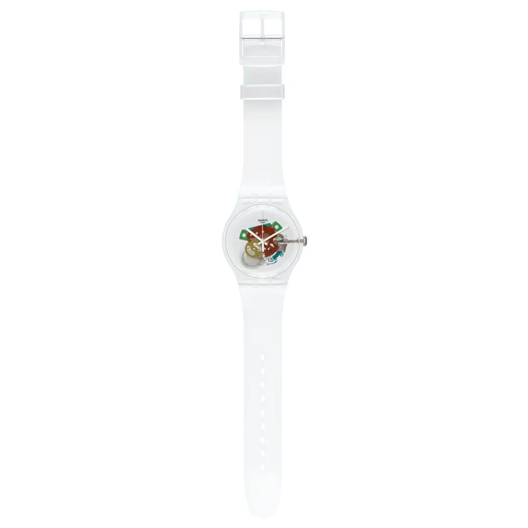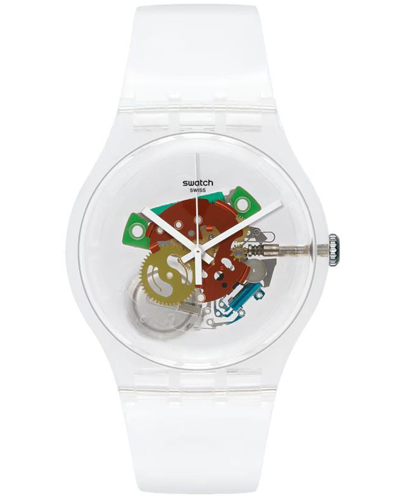 Часы Swatch SO29K104-S06 —  стильный и надежный аксессуар. Современный взгляд на классику. Прозрачный циферблат этих уникальных часов позволяет увидеть цветные компоненты внутри. Случайно выбранные элементы механизма находятся в прозрачном корпусе из биоматериала с прозрачным ремешком. Цвета механизма могут отличаться от изображений, показанных на картинках. Ремешок из пластика на стандартной застёжке. Внутри часов установлен надежный кварцевый механизм, который обеспечивает точность хода. Эти часы водонепроницаемы до 30 метров, что позволяет не беспокоиться о случайных брызгах или дождевых каплях. Swatch SO29K104-S06 — это идеальный выбор для тех, кто ценит сочетание стиля, комфорта и функциональности в одном аксессуаре.