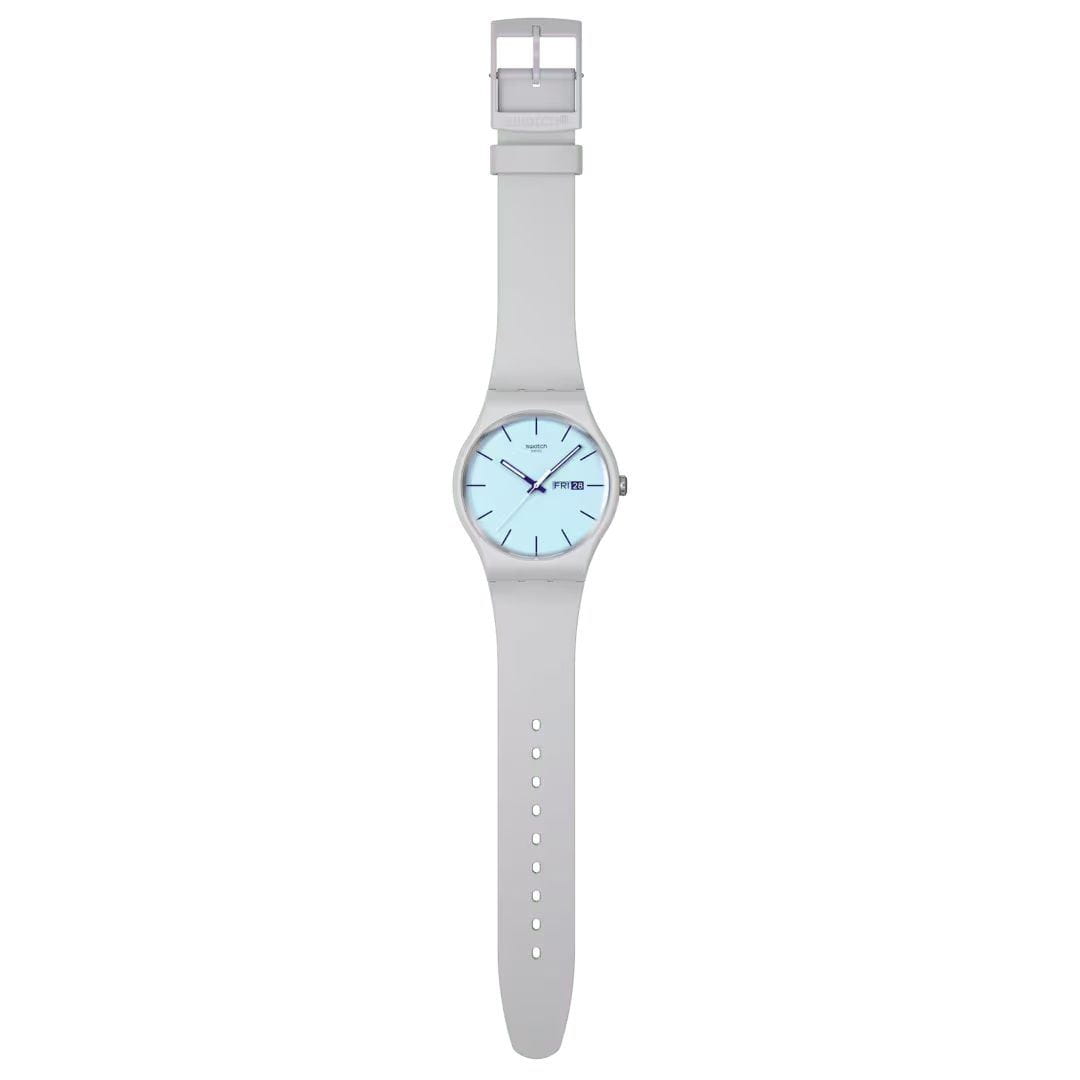 Часы Swatch SO29M702 — стильный и надежный аксессуар. Циферблат этого часов имеет светло-голубой цвет с темно-фиолетовыми напечатанными индексами и окном даты и дня на 3 часах. Темно-фиолетовые стрелки с люминесцентным покрытиемЛюминесцентное покрытиеПозволяет считывать показания времени в темноте. Производители наносят на стрелки, часовые индексы, безель или поверхность циферблата светонакопительный состав, дающий холодное свечение. светятся в темноте, циферблат покрыт стеклом из биоматериала. Матовый светло-серый корпус из биоматериала с соответствующим ремешком, петлей и пряжкой завершает часы. Ремешок из силикона на стандартной застёжке. Внутри часов установлен надежный кварцевый механизм, который обеспечивает точность хода. Эти часы водонепроницаемы до 30 метров, что позволяет не беспокоиться о случайных брызгах или дождевых каплях. Swatch SO29M702 — это идеальный выбор для тех, кто ценит сочетание стиля, комфорта и функциональности в одном аксессуаре.