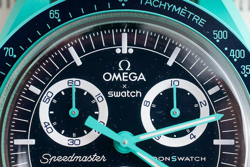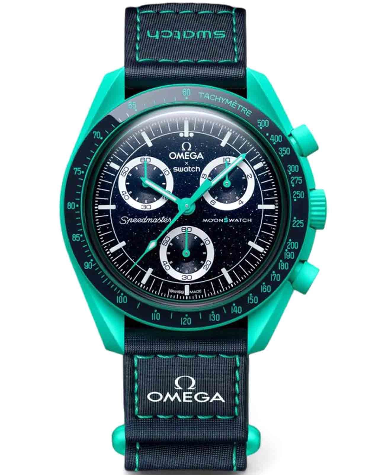Швейцарские мужские часы Swatch x Omega Bioceramic Moonswatch Mission on Earth: Polar Lights SO33L103 с хронографом