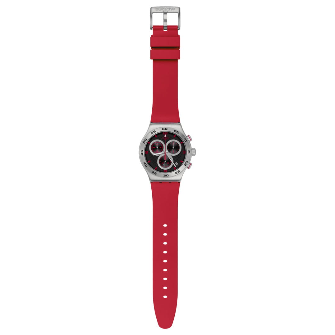 Часы Swatch YVS524 — это стильный и современный аксессуар для тех, кто ценит лёгкость и комфорт. Эти часы с хронографомХронографФункция позволяет измерять отрезки времени с особой точностью: часы, минуты, секунды. Верным признаком хронографа является наличие на циферблате 3 дополнительных окошек-счётчиков. из нержавеющей стали воплощают в себе утонченный стиль городского шика. Черный циферблат сочетает в себе уникальный эффект углеродного волокна и красный принт. Матированный корпус из нержавеющей стали и пряжка в сочетании с матово-красным каучуковым ремешком и тренчиком производят неизгладимое впечатление. На часовую, минутную и секундную стрелки нанесено люминесцентное покрытиеЛюминесцентное покрытиеПозволяет считывать показания времени в темноте. Производители наносят на стрелки, часовые индексы, безель или поверхность циферблата светонакопительный состав, дающий холодное свечение., которое светится в темноте, создавая необычное изображение. Водозащита 30 метров делает часы практичными для повседневного использования. Эти часы подойдут для повседневного ношения и станут ярким акцентом в вашем наряде.