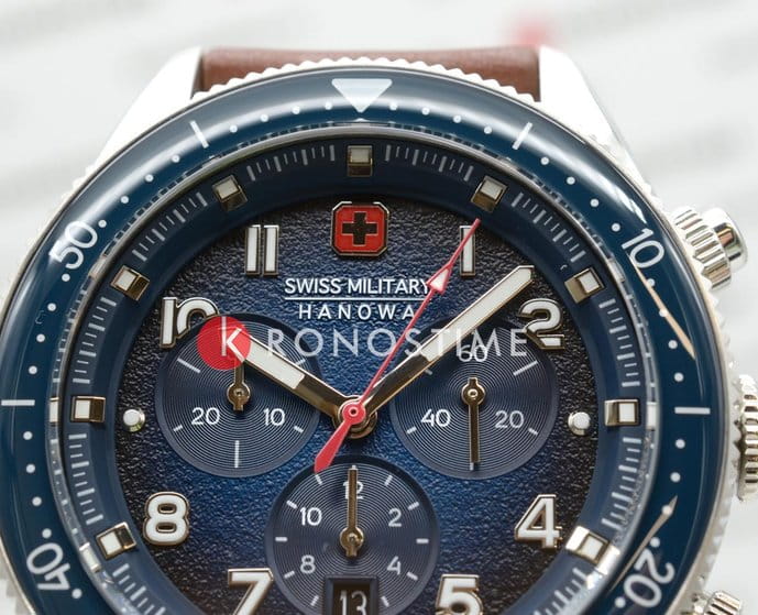 Мужские наручные часы-хронографХронографФункция позволяет измерять отрезки времени с особой точностью: часы, минуты, секунды. Верным признаком хронографа является наличие на циферблате 3 дополнительных окошек-счётчиков. Swiss Military Hanowa SMWGC0003802 из коллекции Greyhound Chrono сочетают в себе спортивный дизайн и надежность современных технологий. Модель обладает круглым корпусом диаметром 43 мм, изготовленным из нержавеющей стали, что обеспечивает высокую устойчивость к внешним воздействиям. Для защиты циферблата используется сапфировое стеклоСапфировое стеклоПрочный и надёжный материал из кристалла сапфира синтетического происхождения, характеризующийся особой твёрдостью и устойчивостью к царапинам и повреждениям., гарантирующее прочную защиту от царапин. БезельБезельВнешний ободок, закрепляющий стекло. В спортивных часах так называется поворотное кольцо с делениями на циферблате, выполняет роль таймера – замеряет отрезки времени на шкале. Неподвижный безель – элемент декора. Однонаправленно вращающийся безель на дайверских часах позволяет фиксировать моменты погружения и выныривания на поверхность. с IP-покрытиемIP-покрытиеМетод ионного напыления. Демонстрирует повышенную устойчивость к истиранию, окислению и химическим веществам. Под воздействием высокого давления и температуры около 1500°C молекулы металла надёжно соединяются с частицами корпуса часов.. Часы оснащены высококачественным швейцарским кварцевым механизмом Ronda 5030, который позволяет точно измерять время благодаря функции секундомераСекундомерСекундоме́р — прибор, способный измерять интервалы времени с точностью до долей секунды.. Циферблат украшен метками в виде арабских цифр и точек, а стрелки и метки покрыты люминесцентным покрытиемЛюминесцентное покрытиеПозволяет считывать показания времени в темноте. Производители наносят на стрелки, часовые индексы, безель или поверхность циферблата светонакопительный состав, дающий холодное свечение., что обеспечивает удобство чтения времени в темноте. Ремешок часов выполнен из натуральной кожи, что добавляет комфорта при длительном ношении. Модель также оснащена окном даты в положении «6 часов», завинчивающейся заводной головкой и имеет водонепроницаемость до 10 атмосфер (100 метров), что позволяет использовать их во время плавания и других водных видов спорта.
