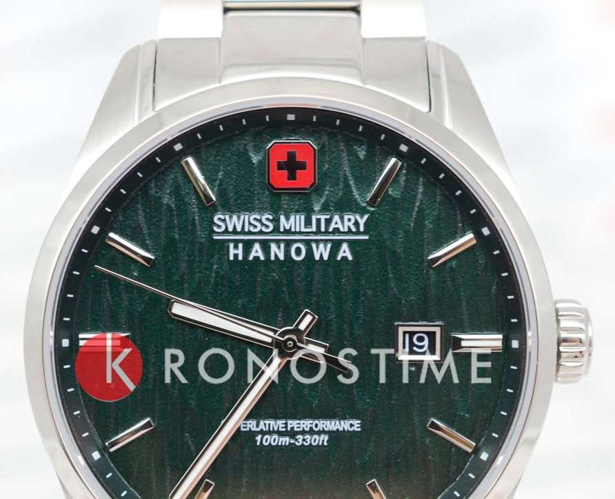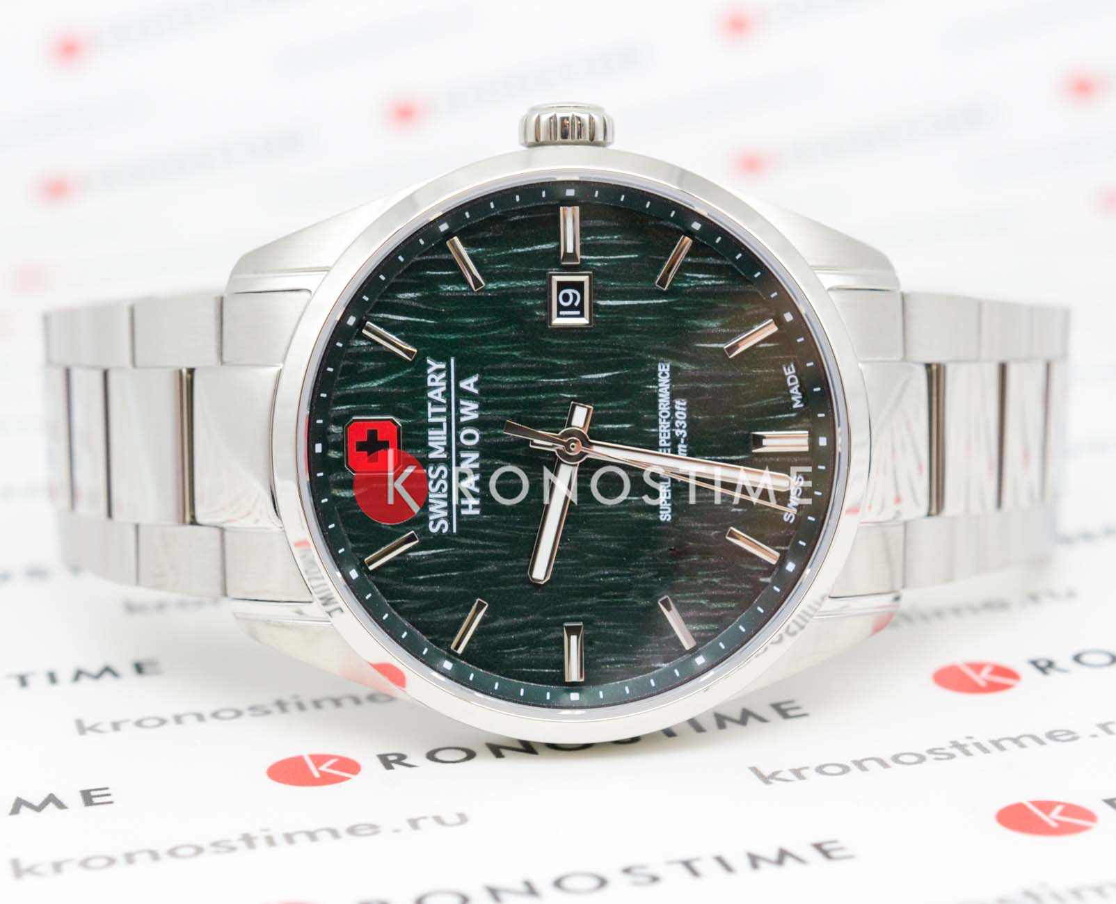 Мужские швейцарские часы Swiss Military Hanowa SMWGH0006101 – это элегантные часы, сочетающие в себе классический дизайн и современную функциональность. Корпус из нержавеющей стали диаметром 42 мм сбалансирован и элегантен. Сапфировое стеклоСапфировое стеклоПрочный и надёжный материал из кристалла сапфира синтетического происхождения, характеризующийся особой твёрдостью и устойчивостью к царапинам и повреждениям. с антибликовым покрытием защищает циферблат от царапин и обеспечивает отличную читаемость при любом освещении. Браслет с раскладной застёжкойРаскладная застёжкаТакой тип застёжки используется только на браслетах из металла. Она никогда не раскрывается полностью, происходит разделение на 2 и более частей. Раскладывающая застёжка снизит вероятность потери часов к минимуму. идеально дополняют дизайн часов, обеспечивая комфортное ношение. Люминесцентное покрытиеЛюминесцентное покрытиеПозволяет считывать показания времени в темноте. Производители наносят на стрелки, часовые индексы, безель или поверхность циферблата светонакопительный состав, дающий холодное свечение. стрелок и меток позволит вам следить за временем даже в полной темноте. Индикатор даты в положении 3 часа. Водонепроницаемость до 100 метров хорошо подходят для повседневного ношения и занятий водными видами спорта.