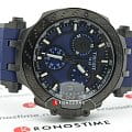<p>Внешний облик модели был вдохновлён лучшими гоночными мотоциклами. Массивный корпус имеет крупные детали, на тёмно-синем циферблате чётко выделяются счётчики хронографаХронографФункция позволяет измерять отрезки времени с особой точностью: часы, минуты, секунды. Верным признаком хронографа является наличие на циферблате 3 дополнительных окошек-счётчиков., стрелки и метки с люминесцентным покрытиемЛюминесцентное покрытиеПозволяет считывать показания времени в темноте. Производители наносят на стрелки, часовые индексы, безель или поверхность циферблата светонакопительный состав, дающий холодное свечение.. Динамичный аксессуар позволит заявить о себе в любой ситуации, эксклюзивности добавляет прозрачная задняя крышка в виде колеса. Кварцевый механизм ETA G10.212. Корпус с PVD-покрытиемPVDУльтратонкое покрытие наносится в технике вакуумного напыления, сочетает в себе нитрид титана особой прочности со слоем золота или оксида хрома. Несёт в себе декоративную или защитную функцию.. Гибкий силиконовый ремешок. Секундомер, отображение текущего числа. Габариты: 47,6 x 43 x 12,3 мм.</p>