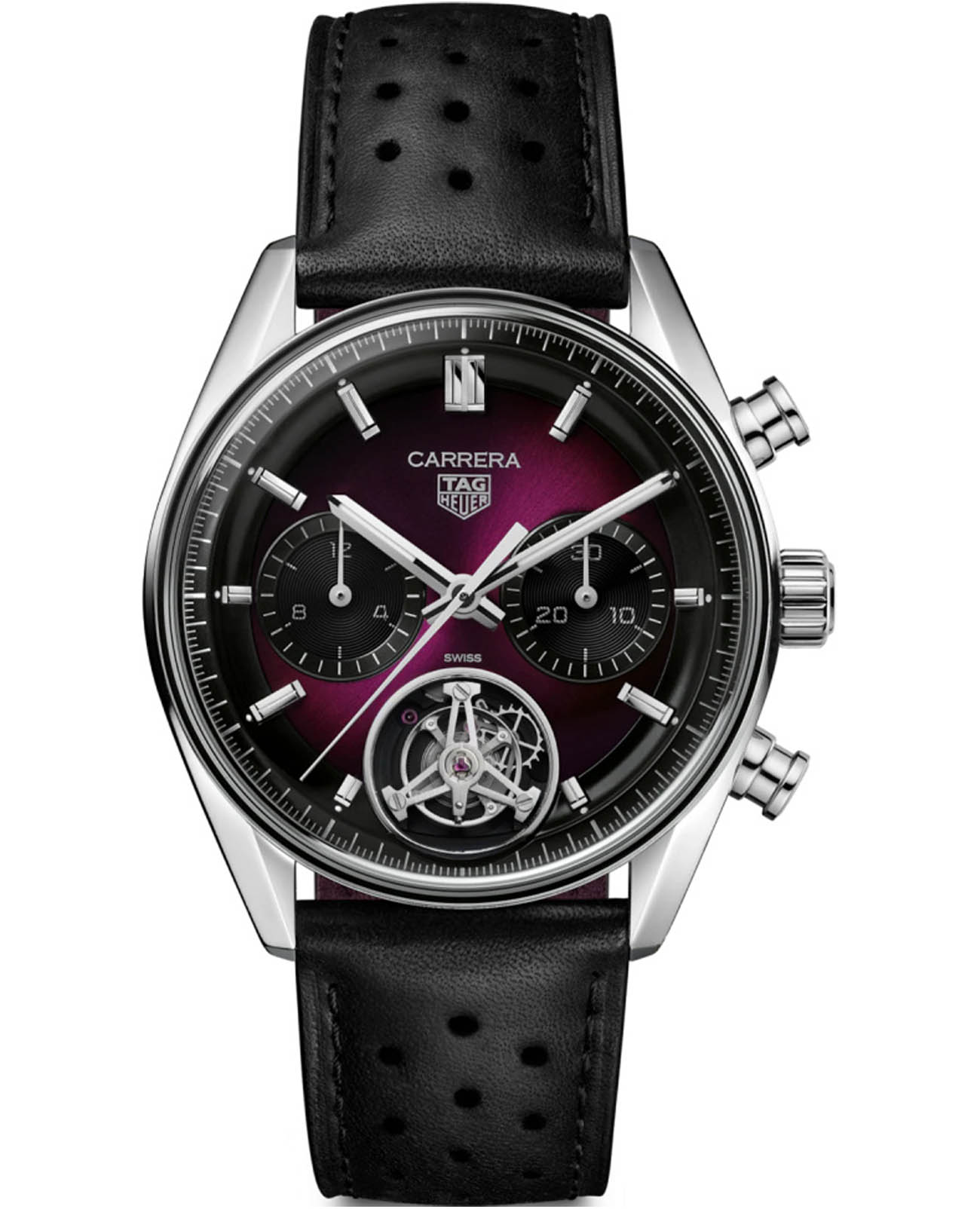 Часы TAG Heuer Carrera Chronograph CBS5017.FC6605. Эта потрясающая версия поднимает классическую модель Carrera на новые высоты. Часы оснащены мануфактурным механизмом TAG Heuer TH20-09. Фирменный дизайн циферблата придает часам эффектность, в то время как сапфировое стеклоСапфировое стеклоПрочный и надёжный материал из кристалла сапфира синтетического происхождения, характеризующийся особой твёрдостью и устойчивостью к царапинам и повреждениям. с выпуклой поверхностью обеспечивает сверхточную разборчивость.Часы-хронографХронографФункция позволяет измерять отрезки времени с особой точностью: часы, минуты, секунды. Верным признаком хронографа является наличие на циферблате 3 дополнительных окошек-счётчиков.. Механический механизм (автоматический калибр) с высокой точностью. Класс водозащиты: 100 метров, позволит плавать, нырять и заниматься другими водными видами спорта. Стрелки с люминесцентным покрытиемЛюминесцентное покрытиеПозволяет считывать показания времени в темноте. Производители наносят на стрелки, часовые индексы, безель или поверхность циферблата светонакопительный состав, дающий холодное свечение.. Корпус часов изготовлен из нержавеющей стали. Кожаный ремешок с раскладной застёжкойРаскладная застёжкаТакой тип застёжки используется только на браслетах из металла. Она никогда не раскрывается полностью, происходит разделение на 2 и более частей. Раскладывающая застёжка снизит вероятность потери часов к минимуму.. Модель с дымчато-фиолетовым циферблатом, выпущенная ограниченной серией, – воплощение эстетического и технического совершенства, адресованное современным знатокам часов.