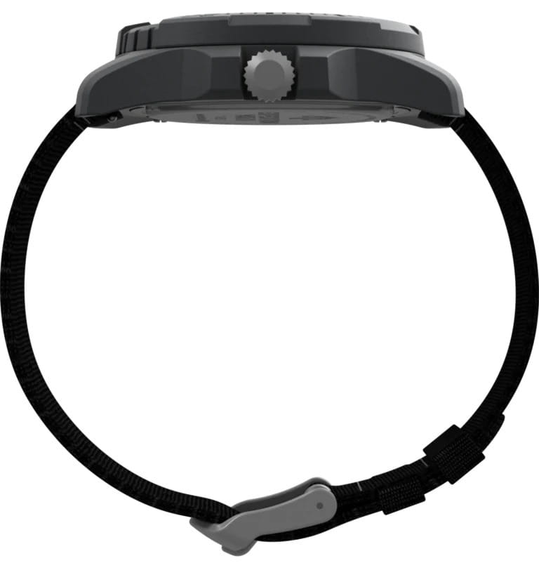Мужские наручные часы Timex TW2V40500 — идеальный аксессуар для современных мужчин, ценящих стиль и функциональность. Эти часы произведены в США и оснащены надежным кварцевым механизмом, который гарантирует точность и долговечность. Корпус часов выполнен из прочного пластика, что придает им современный и эргономичный вид. Диаметр корпуса составляет 46 мм, а толщина — 13 мм, что делает их заметными и стильными. А вращающийся безельБезельВнешний ободок, закрепляющий стекло. В спортивных часах так называется поворотное кольцо с делениями на циферблате, выполняет роль таймера – замеряет отрезки времени на шкале. Неподвижный безель – элемент декора. Однонаправленно вращающийся безель на дайверских часах позволяет фиксировать моменты погружения и выныривания на поверхность. этих часов серого цвета, что придает им современный и устойчивый к износу вид.  Циферблат насыщенного черного цвета оснащен фирменной подсветкой Indiglo, обеспечивающей отличную читаемость в темноте. Стрелки с люминесцентным покрытиемЛюминесцентное покрытиеПозволяет считывать показания времени в темноте. Производители наносят на стрелки, часовые индексы, безель или поверхность циферблата светонакопительный состав, дающий холодное свечение. и арабские цифры на метках также светятся, что позволяет без труда определять время даже в условиях низкой освещенности. Водозащита на уровне 50 WR позволяет не беспокоиться о случайных контактах с водой, таких как дождь или случайные брызги. Минеральное стеклоМинеральное стеклоМинеральное стекло представляет собой искусственно выращенный минерал кварца. Такое стекло отличается особой устойчивостью к повреждениям и царапинам. Уступает по некоторым качествам сапфировому стеклу. надежно защищает циферблат от царапин и повреждений. Окошко даты, расположенное в позиции 3 часа, добавляет удобства в повседневном использовании. Часы комплектуются тканевым ремешком с шириной 22 мм и классической застежкой, что обеспечивает комфортное ношение и надежную фиксацию на запястье. Рифленая заводная головка с защитой подчеркивает внимание к деталям и практичность дизайна.