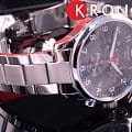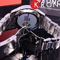 Мужские кварцевые наручные часы Корпус этих часов крупного размера (45 мм) и выполнен из нержавеющей стали L316 металлического цвета Модель имеет устойчивое к царапинам сапфировое стекло, браслет из нержавеющей стали металлического цвета, серый циферблат Калибр механизма: ETA G10212 Класс водозащиты: 100 м / 10 АТМ (разрешается плавать ,душ, брызги) Дополнительные функции и особенности: 30-минутный счетчик и счетчик десятых долей секунд, центральная 60-секундная стрелка хронографа, суммарный и сплит-хронограф Раскладная застежка с кнопками