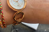 Наручные часы в классическом стиле отличаются лаконичным исполнением, но отдельные детали добавляют роскоши. Модель инкрустирована 12 бриллиантами в 0,0156 карат, расположенными по окружности циферблата. Оригинальный браслет с кольцевидными звеньями и корпус имеют PVD-покрытиеPVDУльтратонкое покрытие наносится в технике вакуумного напыления, сочетает в себе нитрид титана особой прочности со слоем золота или оксида хрома. Несёт в себе декоративную или защитную функцию. оттенка розового золота. Кварцевый калибр ETA F03.111 с 3 камнями. Водостойкость 5 бар. Круглое окошко даты. Габариты: 30 x 30 x 6,35 мм.