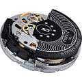 Дизайнеры выбрали для модели суженный безельБезельВнешний ободок, закрепляющий стекло. В спортивных часах так называется поворотное кольцо с делениями на циферблате, выполняет роль таймера – замеряет отрезки времени на шкале. Неподвижный безель – элемент декора. Однонаправленно вращающийся безель на дайверских часах позволяет фиксировать моменты погружения и выныривания на поверхность., такая особенность зрительно увеличивает циферблат и ускоряет процесс считывания показателей. Массивный стальной корпус сочетается с ремешком из натуральной коровьей кожи, поверхность имитирует рисунок кожи крокодила. Метки и стрелки имеют люминесцентное покрытиеЛюминесцентное покрытиеПозволяет считывать показания времени в темноте. Производители наносят на стрелки, часовые индексы, безель или поверхность циферблата светонакопительный состав, дающий холодное свечение., что позволяет использовать часы в темноте. Швейцарский калибр ETA C01.211 с запасом хода 45 часов. Сапфировое стекло устойчиво к возникновению царапин. Водонепроницаемость до 20 бар. . Секундомер, апертура даты. Габариты: 43 x 44 x 16,3 мм.