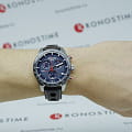 Аксессуар станет ярким дополнением к повседневному образу. Высокоточный хронографХронографФункция позволяет измерять отрезки времени с особой точностью: часы, минуты, секунды. Верным признаком хронографа является наличие на циферблате 3 дополнительных окошек-счётчиков. с синим узорчатым циферблатом дополнен красными элементами, добавляющими спортивного характера. Стильно выглядит необычный ремешок из натуральной кожи. Кварцевый механизм ETA G10.212. Сапфировое стекло с антибликовой поверхностью. Керамический безельБезельВнешний ободок, закрепляющий стекло. В спортивных часах так называется поворотное кольцо с делениями на циферблате, выполняет роль таймера – замеряет отрезки времени на шкале. Неподвижный безель – элемент декора. Однонаправленно вращающийся безель на дайверских часах позволяет фиксировать моменты погружения и выныривания на поверхность., размеченный шкалой тахиметраТахиметрРазмеченная шкала, располагается на ободке или безеле часов. Тахиметр позволяет рассчитать скорость на определённом участке пути, расстояние измеряется в километрах или милях.. Люминесцентная подсветкаЛюминесцентное покрытиеПозволяет считывать показания времени в темноте. Производители наносят на стрелки, часовые индексы, безель или поверхность циферблата светонакопительный состав, дающий холодное свечение.. Отображение даты. . Габариты: 42 x 42 x 12,1 мм.