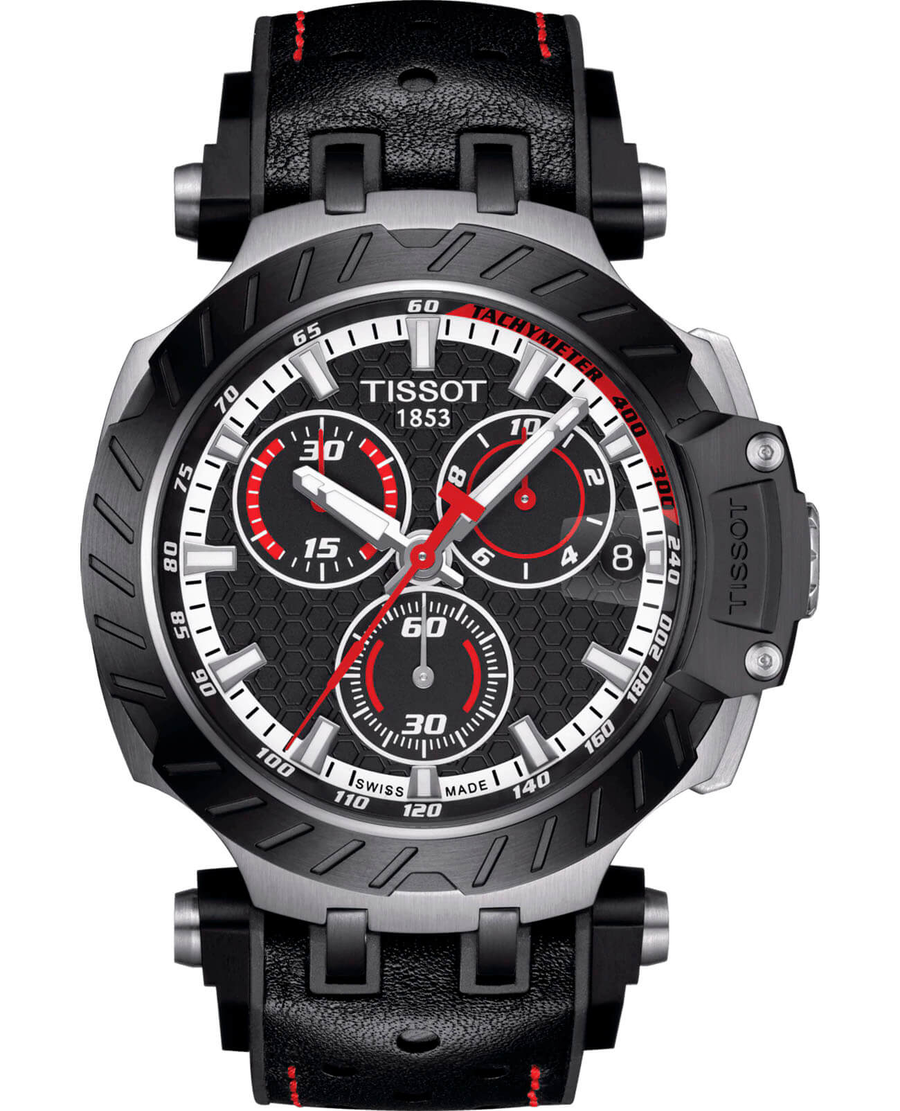 Аксессуар Limited Edition стал отражением скоростной стилистики. Динамичное оформление с мотогоночным дизайном позволит выгодно подчеркнуть повседневный образ. Массивный безельБезельВнешний ободок, закрепляющий стекло. В спортивных часах так называется поворотное кольцо с делениями на циферблате, выполняет роль таймера – замеряет отрезки времени на шкале. Неподвижный безель – элемент декора. Однонаправленно вращающийся безель на дайверских часах позволяет фиксировать моменты погружения и выныривания на поверхность. стилизован под шину мотоцикла, фактурный циферблат с красными акцентами добавляет спортивности. Задняя крышка дополнена узнаваемой гравировкой. Часы – чемпионы не только на трассе, но и в измерении времени. Высокую точность хода обеспечивает швейцарский кварцевый калибр ETA G10.212. Стекло из сапфира с покрытием "антиблик". Перфорированный каучуковый ремешок с кожаной текстурой. Люминесцентная подсветкаЛюминесцентное покрытиеПозволяет считывать показания времени в темноте. Производители наносят на стрелки, часовые индексы, безель или поверхность циферблата светонакопительный состав, дающий холодное свечение.. Корпус из стали 316L с черным PVD-покрытиемPVDУльтратонкое покрытие наносится в технике вакуумного напыления, сочетает в себе нитрид титана особой прочности со слоем золота или оксида хрома. Несёт в себе декоративную или защитную функцию.. Водостойкость 100 метров. Секундомер, тахиметрТахиметрРазмеченная шкала, располагается на ободке или безеле часов. Тахиметр позволяет рассчитать скорость на определённом участке пути, расстояние измеряется в километрах или милях., индикация числа, хронографХронографФункция позволяет измерять отрезки времени с особой точностью: часы, минуты, секунды. Верным признаком хронографа является наличие на циферблате 3 дополнительных окошек-счётчиков.. Габариты: 47,6 x 43 x 12,71 мм.