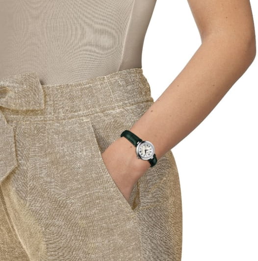 Женские швейцарские часы Tissot Bellissima T126.010.16.113.02, кварцевый механизм с высокой точностью. Сапфировое стеклоСапфировое стеклоПрочный и надёжный материал из кристалла сапфира синтетического происхождения, характеризующийся особой твёрдостью и устойчивостью к царапинам и повреждениям. устойчивое к появлению царапин, обладающее высокой прозрачностью. Класс водозащиты: 50 метров, позволит защитить корпус от случайных брызг или капель дождя. Корпус часов изготовлен из нержавеющей стали. Кожаный ремешок.