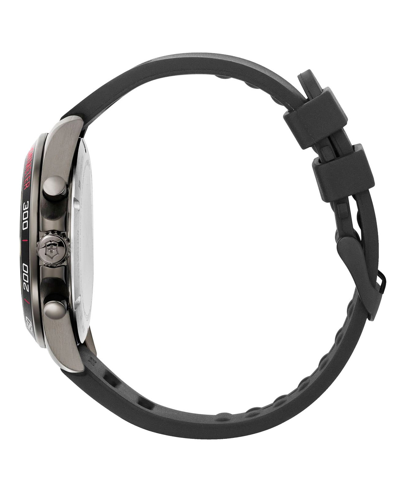 Мужские швейцарские часы-хронографХронографФункция позволяет измерять отрезки времени с особой точностью: часы, минуты, секунды. Верным признаком хронографа является наличие на циферблате 3 дополнительных окошек-счётчиков. Victorinox Fieldforce Sport Chronograph 241889 с надёжным кварцевым механизмом. Сапфировое стеклоСапфировое стеклоПрочный и надёжный материал из кристалла сапфира синтетического происхождения, характеризующийся особой твёрдостью и устойчивостью к царапинам и повреждениям. с трёхслойным антибликовым покрытием. Корпус часов выполнен из нержавеющей стали с PVD-покрытиемPVDУльтратонкое покрытие наносится в технике вакуумного напыления, сочетает в себе нитрид титана особой прочности со слоем золота или оксида хрома. Несёт в себе декоративную или защитную функцию..БезельБезельВнешний ободок, закрепляющий стекло. В спортивных часах так называется поворотное кольцо с делениями на циферблате, выполняет роль таймера – замеряет отрезки времени на шкале. Неподвижный безель – элемент декора. Однонаправленно вращающийся безель на дайверских часах позволяет фиксировать моменты погружения и выныривания на поверхность. с метками тахиметраТахиметрРазмеченная шкала, располагается на ободке или безеле часов. Тахиметр позволяет рассчитать скорость на определённом участке пути, расстояние измеряется в километрах или милях.. Окошко даты находится в положении 6 часов, стрелки и метки с люминесцентным покрытиемЛюминесцентное покрытиеПозволяет считывать показания времени в темноте. Производители наносят на стрелки, часовые индексы, безель или поверхность циферблата светонакопительный состав, дающий холодное свечение.. Класс водозащиты: 100 метров, позволит плавать, нырять и заниматься другими водными видами спорта. Практичный резиновый ремешок на стандартной застёжке.