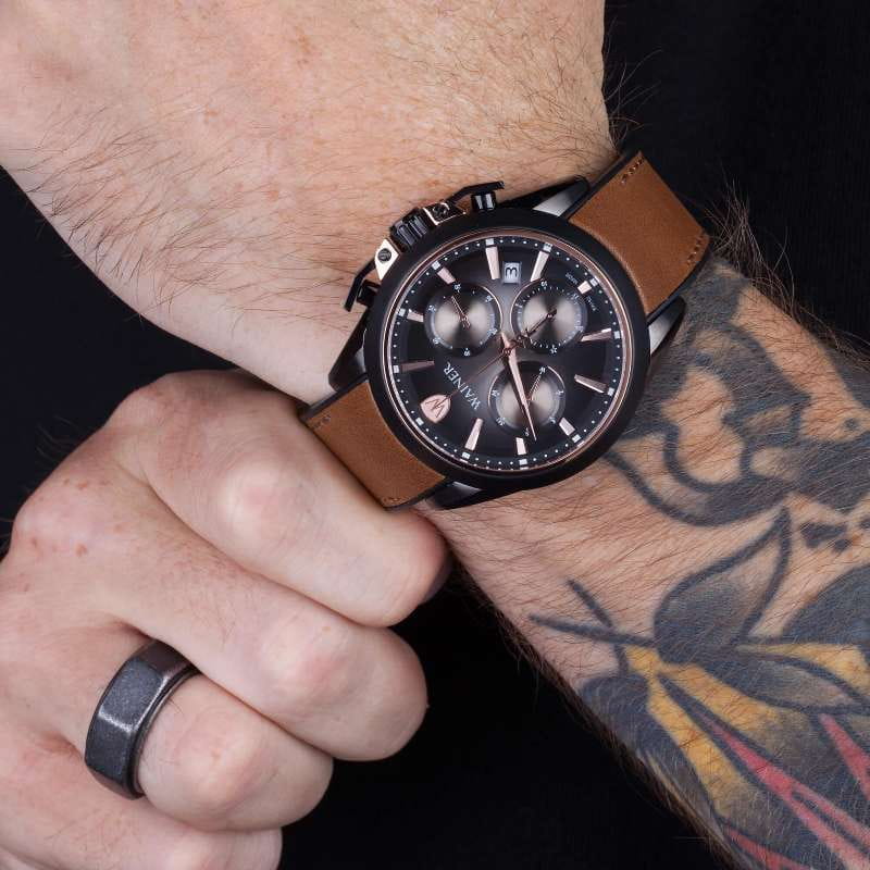 Мужские кварцевые часы-хронографХронографФункция позволяет измерять отрезки времени с особой точностью: часы, минуты, секунды. Верным признаком хронографа является наличие на циферблате 3 дополнительных окошек-счётчиков. с секундомеромСекундомерСекундоме́р — прибор, способный измерять интервалы времени с точностью до долей секунды. Wainer WA.16101-C сочетает элегантный дизайн и высокое качество исполнения. Корпус выполнен из нержавеющей стали 316L серебристого цвета, диаметром 44 мм и толщиной 11 мм, обеспечивает прочность и долговечность. Циферблат с метками в виде штрихов выполнен по технологии Sunray (солнечные лучи) и украшен фирменным логотипом Wainer. Сапфировое стеклоСапфировое стеклоПрочный и надёжный материал из кристалла сапфира синтетического происхождения, характеризующийся особой твёрдостью и устойчивостью к царапинам и повреждениям. защищает дисплей от царапин и механических повреждений. Секундная стрелка на конце декорирована логотипом бренда - буквой W. Окошко даты находится в положении между отметками 4 и 5 часов. Стрелки с люминесцентным покрытиемЛюминесцентное покрытиеПозволяет считывать показания времени в темноте. Производители наносят на стрелки, часовые индексы, безель или поверхность циферблата светонакопительный состав, дающий холодное свечение., улучшая читаемость в условиях недостаточного освещения. Кожаный ремешок на силиконовой основе и стандартной застёжкой обеспечивает комфортное ношение. Водонепроницаемость до 100 метров делает модель подходящей для плавания и активного образа жизни. Wainer — это стильный и надежный аксессуар для тех, кто ценит швейцарское качество и современные технологии.