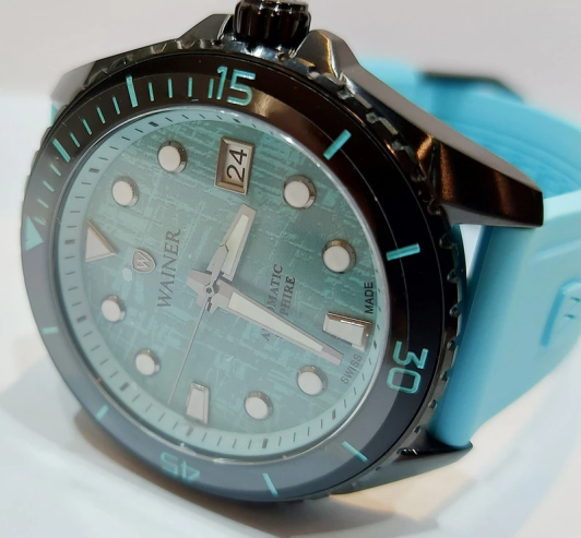 Модель Wainer WA.25110-A сочетает швейцарское качество, современный дизайн и надежность. Корпус диаметром 46 мм выполнен из нержавеющей стали с PVD-покрытиемPVDУльтратонкое покрытие наносится в технике вакуумного напыления, сочетает в себе нитрид титана особой прочности со слоем золота или оксида хрома. Несёт в себе декоративную или защитную функцию., придающим часам стильный и современный вид. Циферблат оформлен в динамичном стиле, а сапфировое стеклоСапфировое стеклоПрочный и надёжный материал из кристалла сапфира синтетического происхождения, характеризующийся особой твёрдостью и устойчивостью к царапинам и повреждениям. защищает его от царапин и механических повреждений, обеспечивая четкость отображения информации. Часы оснащены автоматическим механизмом, обеспечивающим точность хода. Гибкий силиконовый ремешок бирюзового цвета создает эффектный контраст и гарантирует комфортное ношение. Водонепроницаемость до 100 метров делает модель подходящей для плавания и активного отдыха. Wainer WA.25110-A — это стильный аксессуар для мужчин, ценящих сочетание яркого дизайна, швейцарской точности и спортивной функциональности.