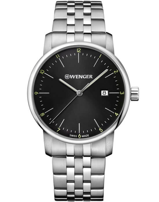 Швейцарские мужские часы в классическом стиле Wenger 01.1741.122, кварцевый механизм с высокой точностью. Класс водозащиты: 100 метров, позволит плавать, нырять и заниматься другими водными видами спорта. Корпус часов изготовлен из стали, цвета.